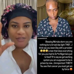 Nkechi Blessing call on Efcc for the arr£st of Blessing CEO for defrauding Nigerians with fake cancer donation. Blessing Nkiruka okoro you are nothing but a broad day light TH!EF, think say you been dey with a provider a man that does everything for you, you had to Sc*m Nigerians just to feed? If to say we get working system you are supposed to be in prison by now.